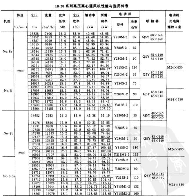 10-20型離心風(fēng)機(jī)參數(shù)表